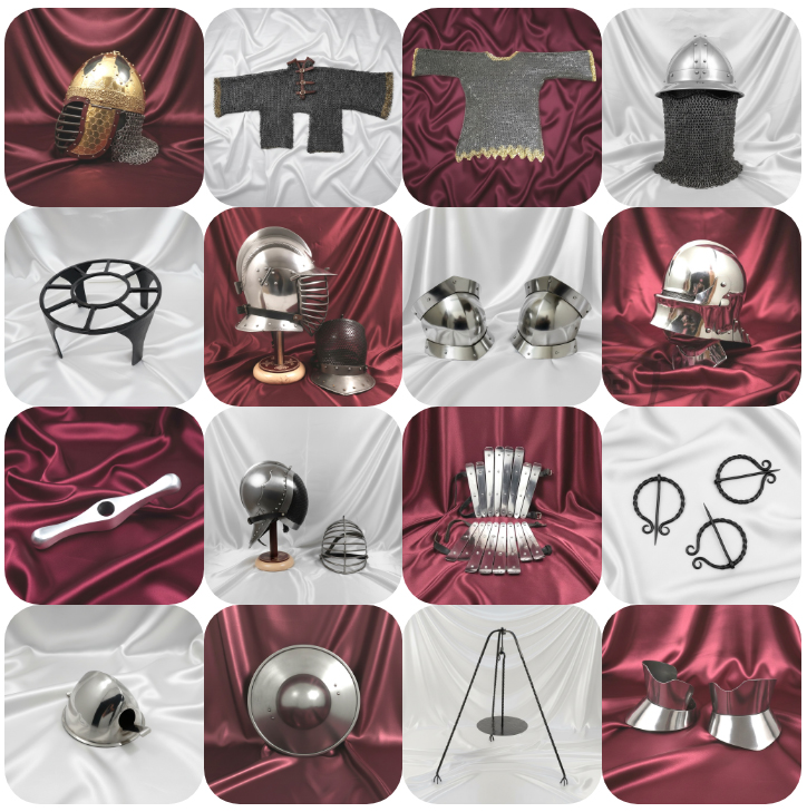 Handcrafted helmets, chainmail, and plate armour made to historical specifications.