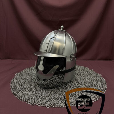 At first glance, the helmet’s distinctive silhouette commands attention. Its rounded, smooth contours gracefully flow from the crown to the base, imparting an aura of elegance and strength. The helmet’s symmetrical shape imparts balance and symmetry to the warrior’s countenance, inspiring fear in adversaries and admiration from onlookers.