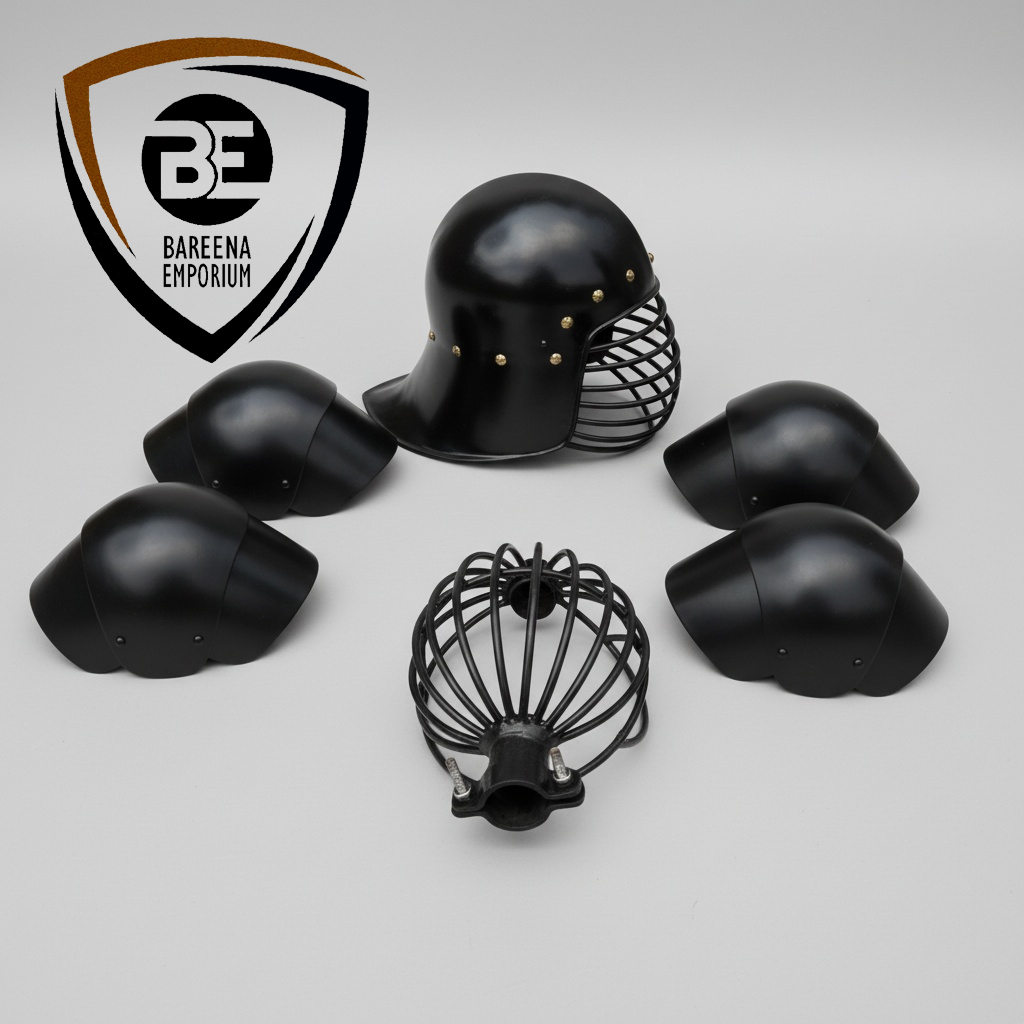 BE – Blackened Sallet Helmet Starter Kit with Articulated Elbows & Knees – Medieval Armor Set